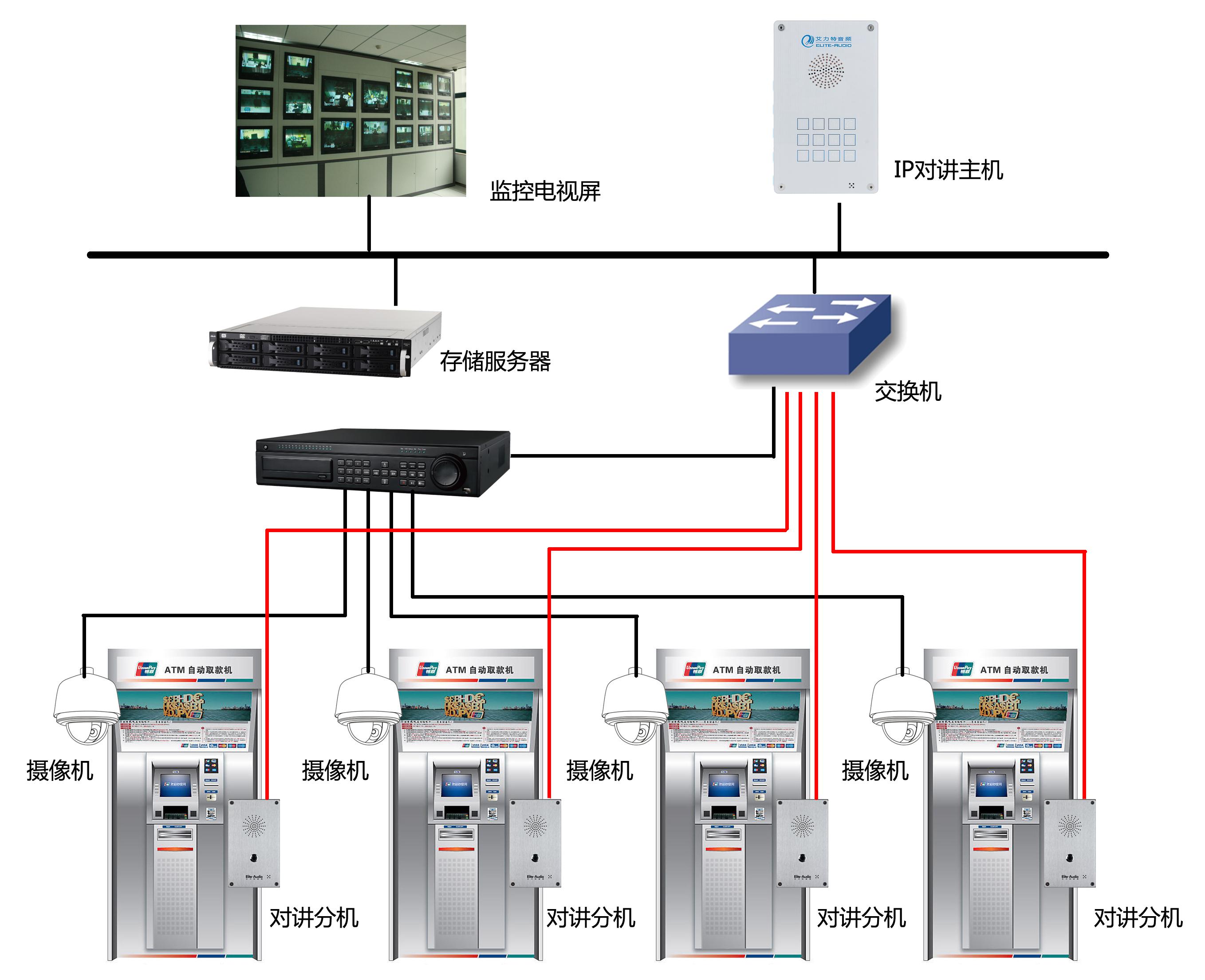 廣州峰火銀行ATM—IP網(wǎng)絡(luò)對講連線示意圖如下:
